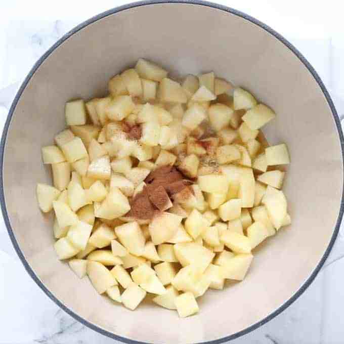 Now, transfer the diced apples into a skillet or pan.